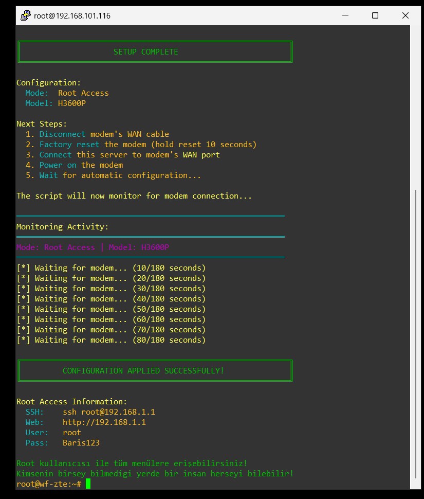 Teşekkürler. ilk yöntem ile çok kolay bir şekilde şifreyi aldım. Ancak modem yazılımı V9.0.0P17_TR olduğu için sanırım root işlemi gerçekleşmedi. |